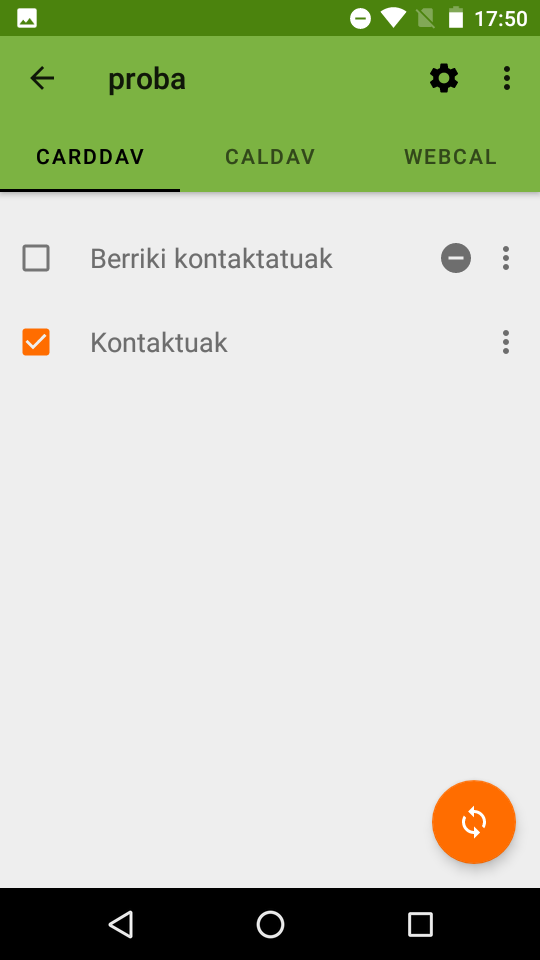 CARDDAV fitxa agertuko zaigu, bertan ze kontaktu zerrenda sinkronizatu nahi ditugun aukeratuko dugu.