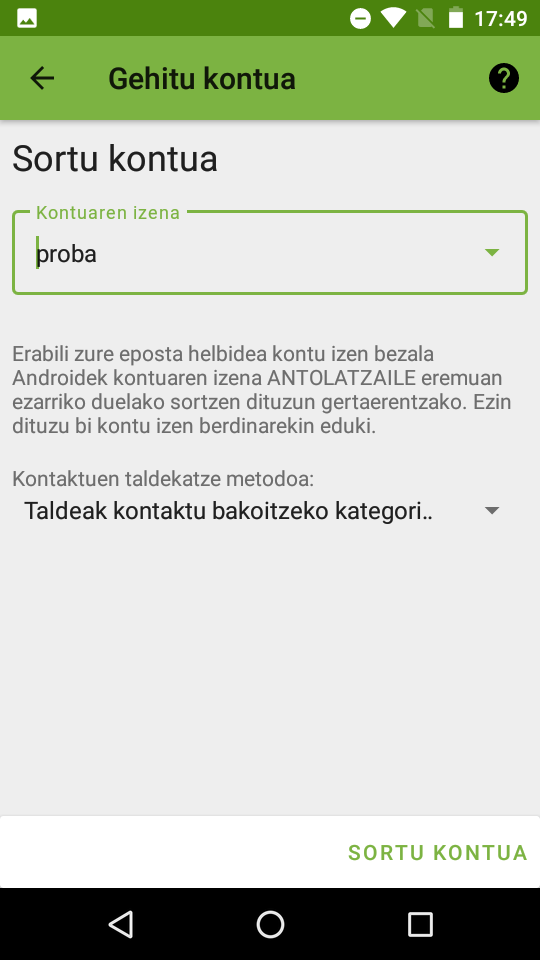 Ondoren, behean eskuinean dagoen Sortu kontua botoia sakatu.