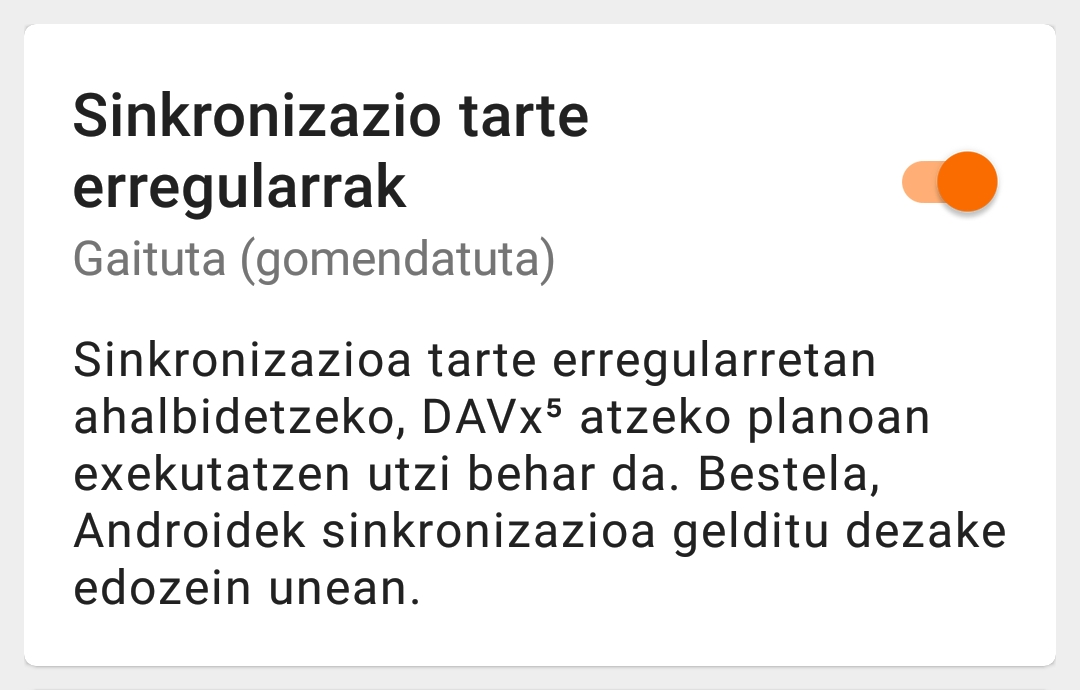 Egutegiak edo/eta kontaktuak tarte erregularretan, maiztasun jakin batekin alegia, sinkronizatzea nahi al dugun galdetuko digu jarraian. Aukera hau aktibatzea gomendatzen da.