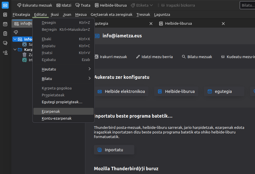 Integrazio hau thunderbirden beraren aukerak jarraituz egiten da oso modu errazean.
