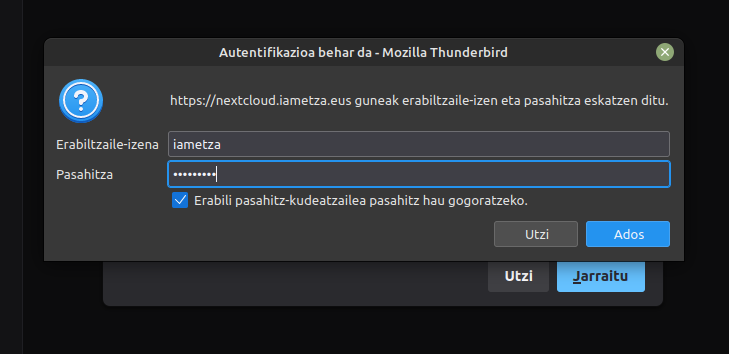 Aurrera egiteko gure Nextcloudeko kontuaren pasahitza eskatuko digu.