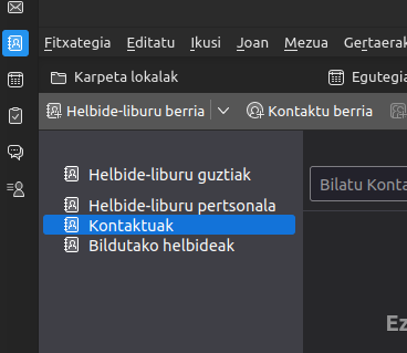 Aurreko pausuak eginda Nextcloudeko helbide-liburuak sinkronizatuta izango ditugu, baina thunderbirdek bere helbide-liburu propioak erabiltzen ditu. Bertan gordetako kontaktuak Nextcloud instantziara eraman nahi baditugu sinkronizaziorako nahikoa da kontaktuak helbide-liburu batetik bestera mugitzea arrastratu-eta-jaregin eginaz.