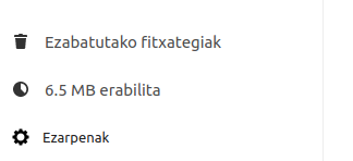 Modu honetan ezabatuko fitxategi eta karpetak ez dira benetan ezabatzen. Zakarrontzi moduko batean biltzen dira. Zakarrontziko fitxategi eta karpetak ikusteko ezkerreko menuaren beheko aldean dagoen Ezabatuko fitxategiak aukeran klik egin behar da.
