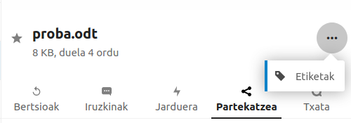 Fitxen gainean fitxategi edo karpetaren izenaren eskuinaldean dagoen hiru puntuen botoian klik egin eta Etiketak hautatu.