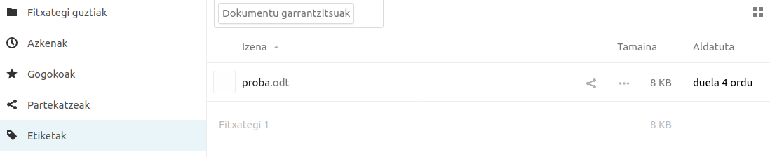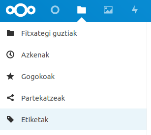 Modu honetan etiketatutako fitxategi eta karpetak ikusteko: