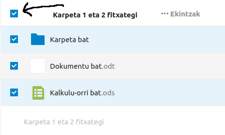 Goiko kontrol-laukia erabiliz Zakarrontziko fitxategi eta karpeta guztiak hautatu ditzakegu klik bakarrean.