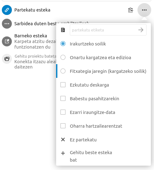 Fitxategiak partekatzean soilik agertzen diren aukerak