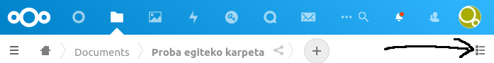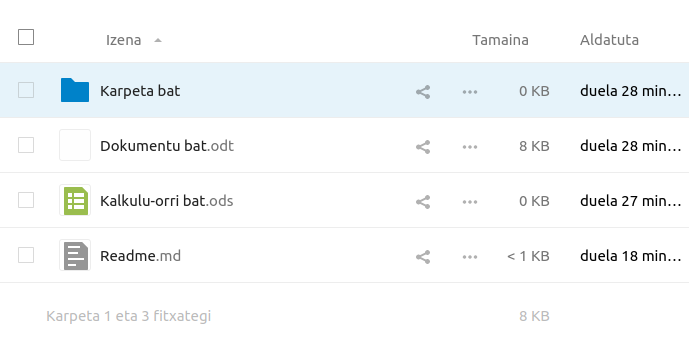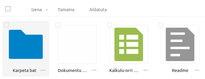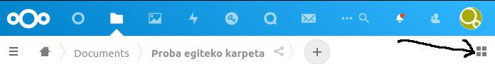 Nextcloudek fitxategi eta karpetak bistaratzeko bi modu ditu: sareta eta zerrenda.