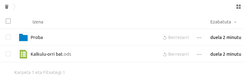 Berrezarri botoia: Errenkada bakoitzean fitxategi edo karpeta bere jatorrizko kokapenera berrezartzeko botoia dago.