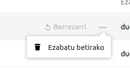 Hiru puntuen botoiko aukera bakarra Ezabatu betirako da. Honek behin betiko ezabatzen du fitxategi edo karpeta.