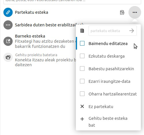 Horretarako, partekatzeko esteka bat baino gehiago sor ditzakegu eta bakoitzari baimen eta aukera desberdinak eman.
