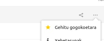 Fitxategi edo karpeta bat Gogokoak atalera gehitzeko nahikoa da bere errenkadako hiru puntuen botoian klik egin eta Gehitu gogokoetara aukeran klik egitea.