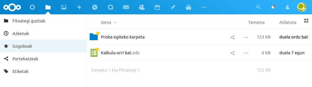 Fitxategiak aplikazioko ezkerreko menuko beste aukera interesgarri bat Gogokoak da. Karpetetan gora eta behera bueltaka bila ibili gabe erraz aurkitu nahi ditugun fitxategi eta karpetak gorde ditzakegu bertan.