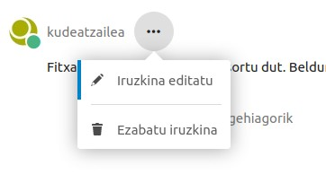 Iruzkin bakoitzaren hiru puntuen botoia erabiliz gure iruzkinak editatu edo ezabatu ditzakegu.
