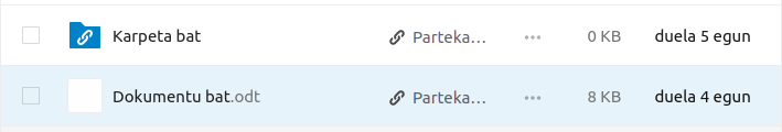 Partekatutako fitxategi edo karpetaren errenkadan partekatua izan dela agertuko zaigu:
