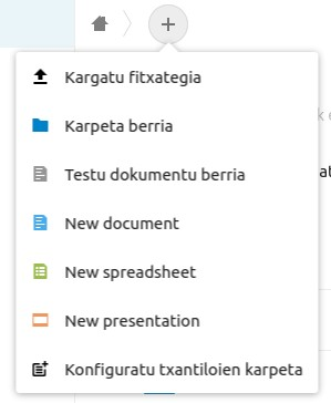 Fitxategi edo karpeta sortu aurretik, kontuan izan behar dugu ze karpetatan sortu nahi dugun (sortu ondoren karpetaz aldatu daiteke). Horretarako, karpetetan klik eginez dagokion karpetaraino joango gara.