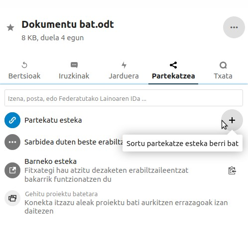 Plus botoian klik egitean dokumentu edo karpeta hori partekatzeko erabili beharreko esteka arbelera kopiatuko zaigu.
