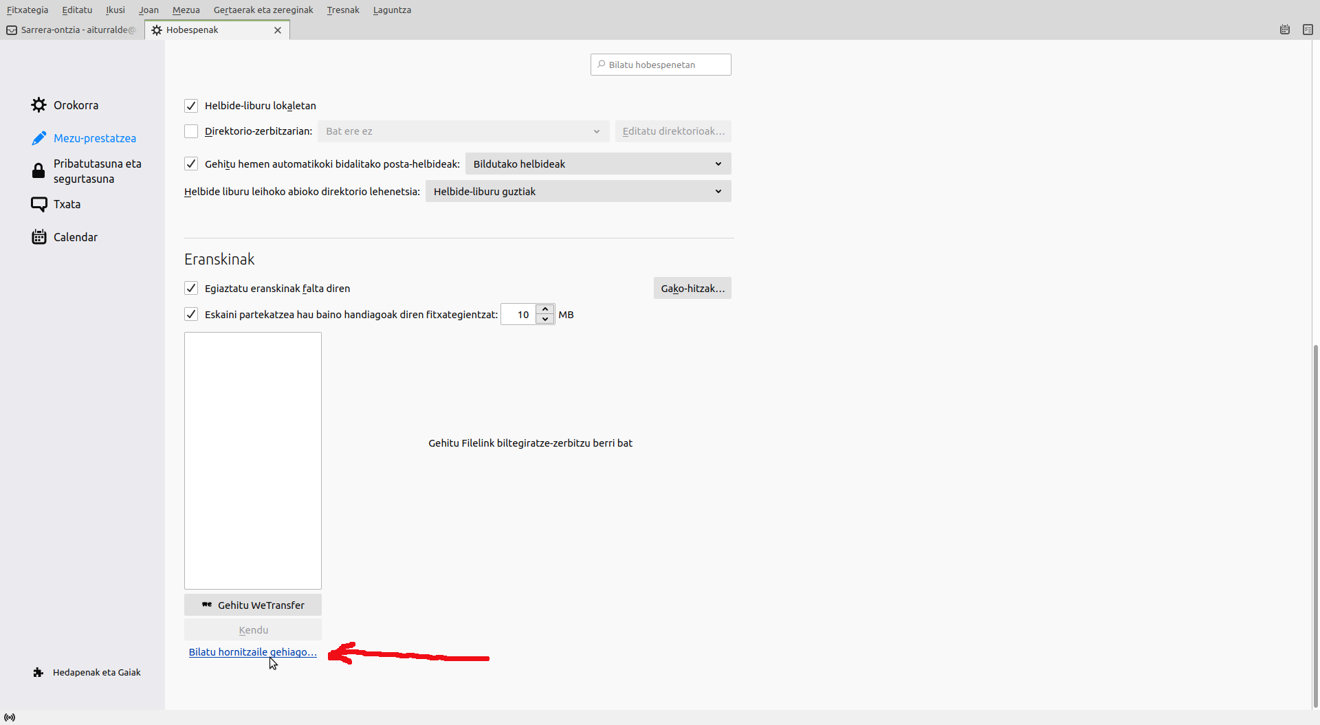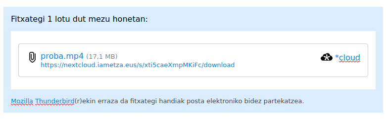 Thunderbird-en fitxategi handi bat partekatzean automatikoki Nextcloudera igo eta esteka bidaltzea