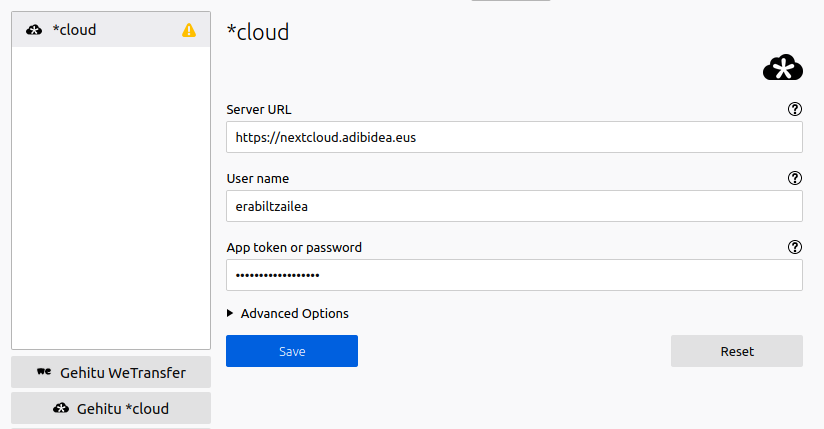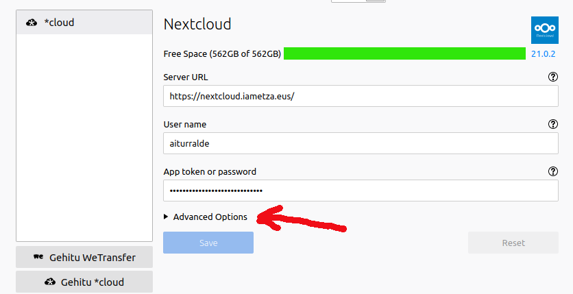 Server URL Gure Nextcloud zerbitzariaren helbidea. Adibidez: https://nextcloud.adibidea.eus