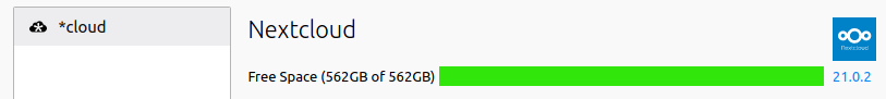 Dena ondo joan bada, Nextclouden bertsioa eta bertan daukagun leku librea agertuko zaizkigu.
