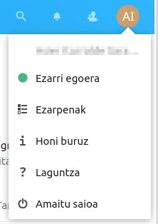Aplikazioa hautatzeko menua: Erabili nahi dugun Nextcloudeko aplikazioa hautatzeko balio du. Nextcloud instalazio bakoitzean beharraren arabera aukeratutako aplikazio zerrenda egoten da.